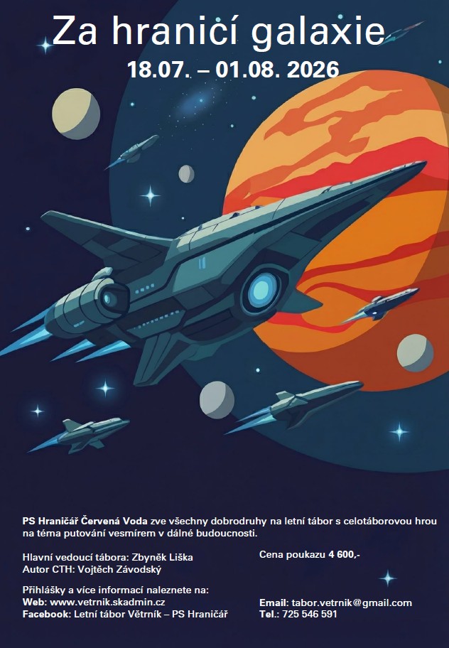 Galaktická výprava Za hranice galaxie začíná 18.07.2026 a končí 01.08.2026 na kosmodromu Větrník.